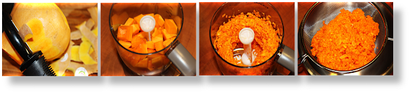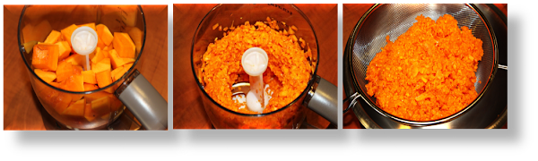 Pon la calabaza sobre un colador por si suelta algo de líquido. Reserva.
