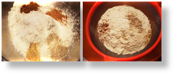 Añade a un bol la harina, las especias y el bicarbonato. Tamiza.