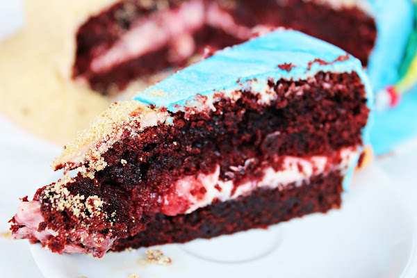 De momento te dejo la receta de este bizcocho red Velvet, es de Bea Roque, del blog: El Rincón de Bea y está delicioso, no lleva mantequilla y tiene más cacao puro que el que habitualmente hago: Red velvet I, los dos bizcochos me gustan por igual, ahora ya tienes dos recetas de red velvet, una con mantequilla y otra con aceite. Espero que lo pruebes, te encantará.