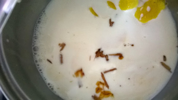 En un cazo poner a calentar la leche con el azucar, la piel de limon y la canela