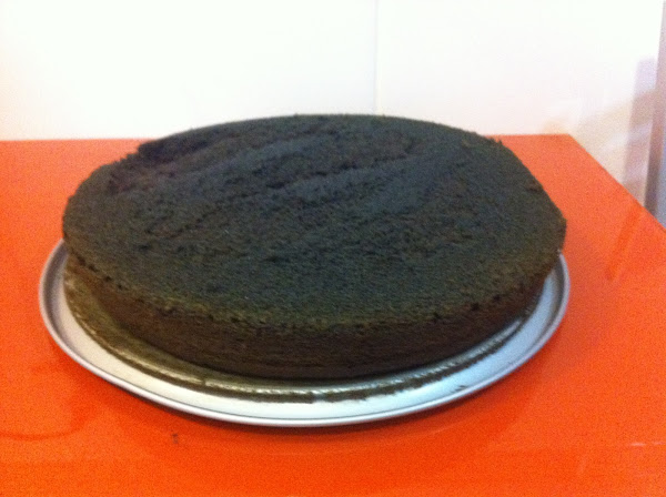 metemos al horno caliente, a 180º durante 10 minutos, veremos que no esta terminado de hacer pero la idea es que quede de esta manera, para que rinda un poco, lo sacamos y verteremos sobre el, la crema de Tiramisu,