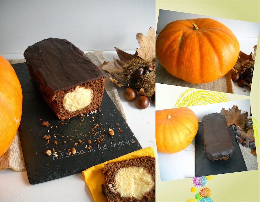 La tercera receta es este Bizcocho de calabaza y chocolate (pincha en el nombre para ver la receta completa) del blog El Paraíso de los Golosos. Se trata de un bizcocho muy suave, ideal para mojar en un tazón de leche: