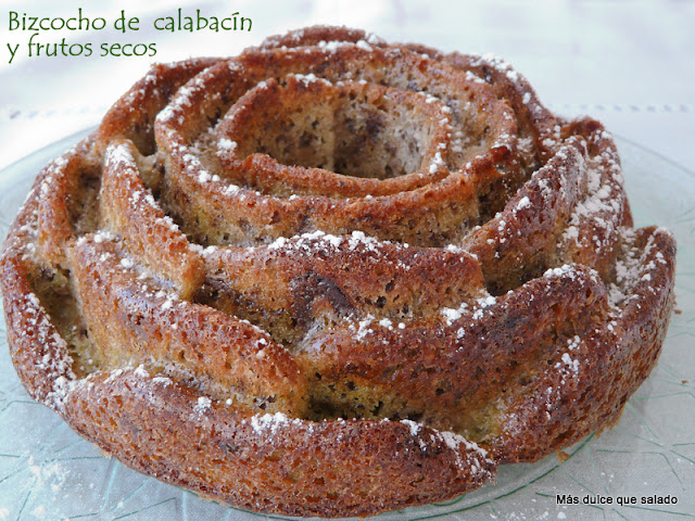 Leire ha elaborado un rico bizcocho de calabaza que tiene una presencia increíble, con un color anaranjado que le aporta la calabaza. A mi personalmente me encantan los bizcochos con calabaza, si así que este estoy deseando probarlo.