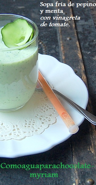 Mi amiga Myriam del blog Como agua para chocolate nos propone una rica sopita suuuuuper refrescante. Y con la vinagreta de tomate no podremos parar de tomarla!! Rica, rica!!