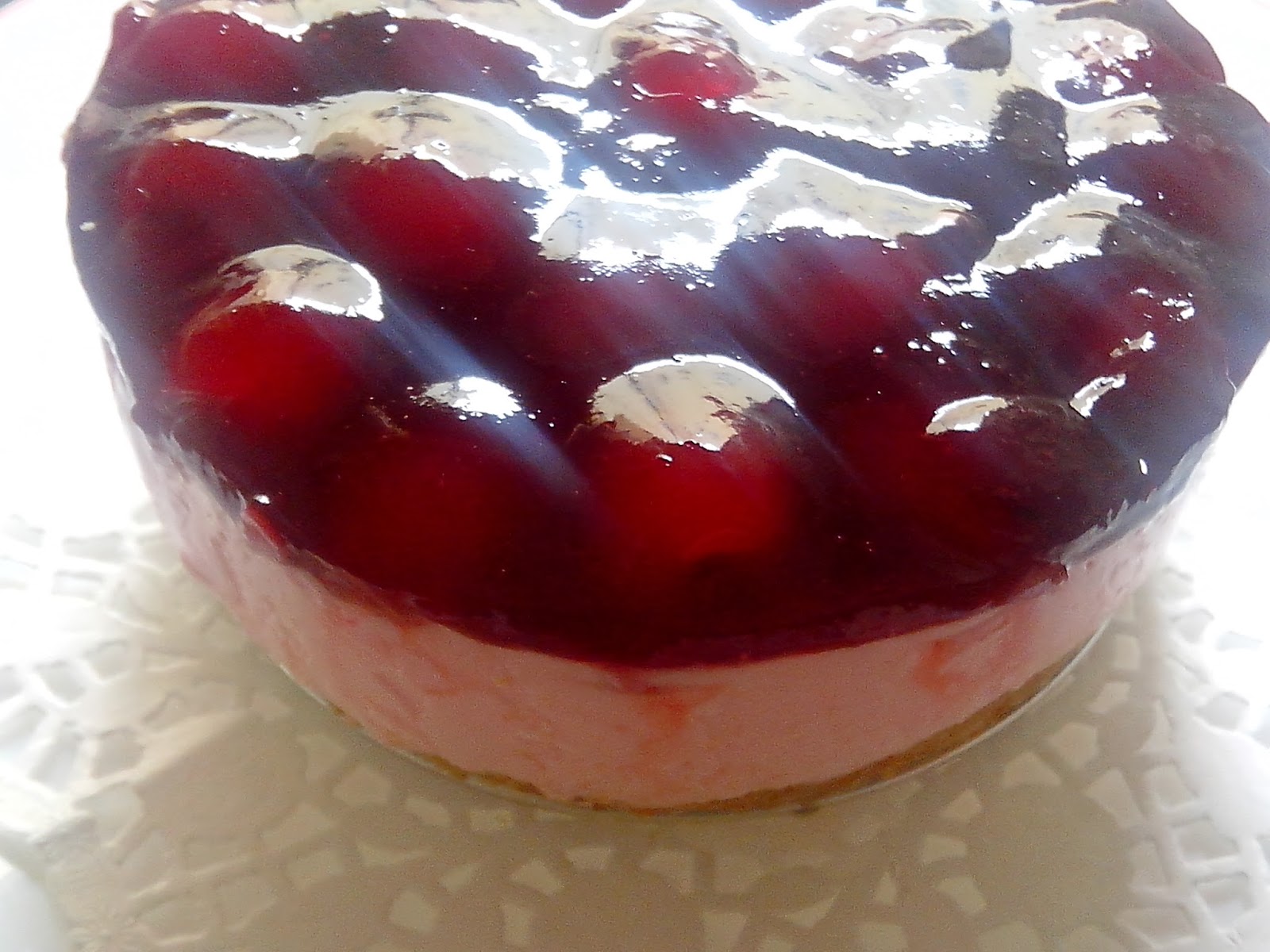 Y finalmente, otra tartita de queso sin horno, ideal para el verano desde el blog Dulces sueños. Con una deliciosa mermelada de cerezas y cerezas confitadas que quitan el sentido!!