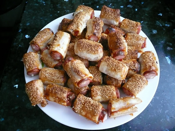 1 huevo,1 lámina de hojaldre,5 salchichas,5 lonchas de quesoHoy ha venido mi amiga Mode a cenar a casa, no era una de esas cenas de supermesa y entrante, primero, segundo y postre.
