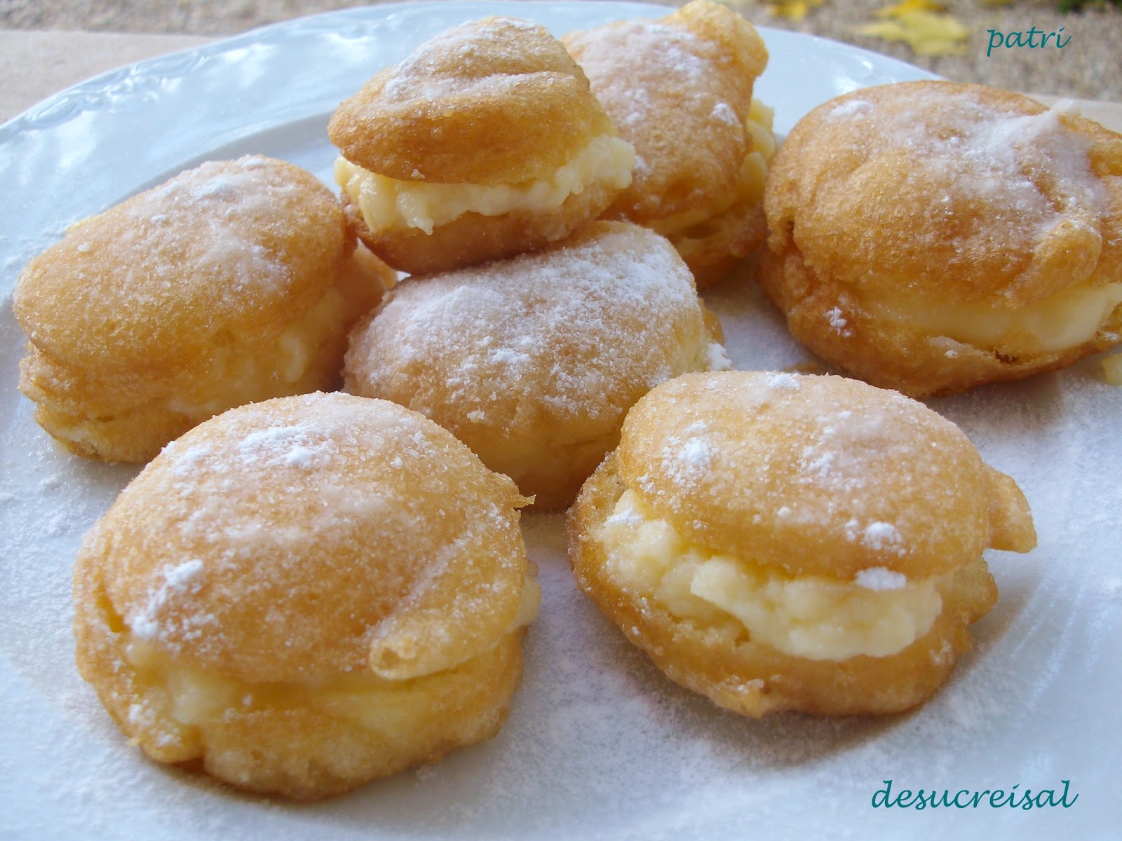 yo los hice con dos rellenos...con crema pastelera...y con nata montada.....los dejo a vuestra eleccion.....a mi me gustan mas con crema pastelera