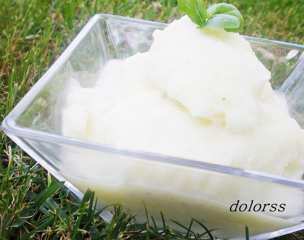 Melón 800 gr. helado de limón 100 gr. cava 1 taza hierbabuena 1 ramilleteCortar el melón en 2 mitades, extraer las semillas y a continuación, la pulpa con\r\nuna cucharilla en forma de bolas, colocándolas en cuatro cuencos.