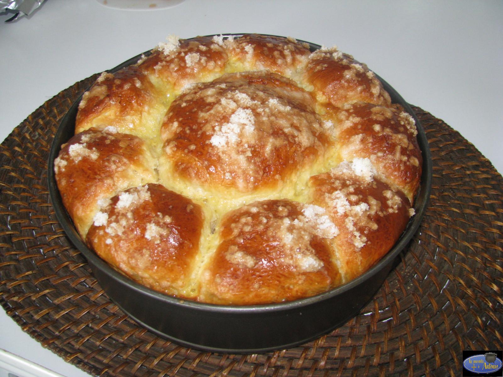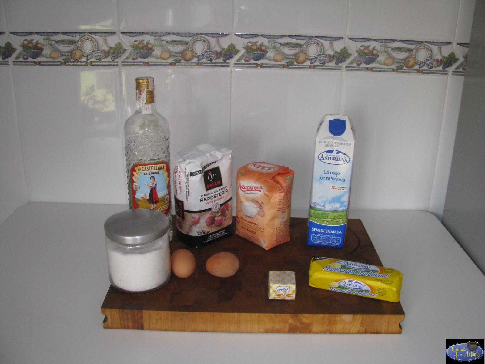 Ingredientes:- 200 ml de leche- 70 grs de mantequilla- 75 grs de azúcar- 2 huevos- 500 grs de harina de fuerza- 1 pizca de sal- 35 grs de levadura fresca- Azúcar para adornar - Un poco de anís