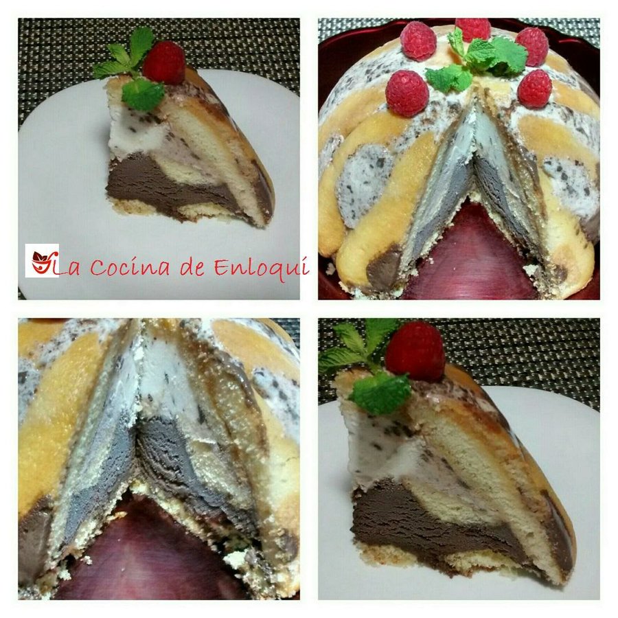 El zucotto es un postre italiano, se cree que procede de Florencia y está hecho con bizcocho calado con Amaretto, almendras, helado y chocolate. Lo más característico de este postre es la forma semiesférica en la que se presenta. Es por esta forma redondeada que yo llamo a mi versión BOMBA HELADA. Como os iba diciendo, lo que vamos a preparar hoy es mi versión de este postre. Ya veréis que no os dejará indiferentes. Si tienes reunión de amigos o familiar y quieres sorprender con un postre totalmente diferente y que no sea la típica tarta sin horno, pues prepara una bomba helada y todos quedarán encantados.