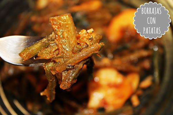 Hace unos meses hice esta rica tortilla de borrajas: TORTILLA DE BORRAJAS, AJETES Y QUESITOS, y hoy he querido cocinarlas como hago habitualmente las judías verdes; con un sofrito de ajo y pimentón, acompañadas de patatas.
