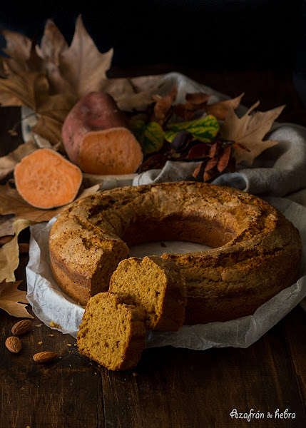primero cocemos la batata pelada y troceada con el palo de canela, clavo, cascara de limón, azúcar y un poco de agua a medio cubrir hasta que este tierna. Dejamos enfriar. Encendemos el horno a 175º y preparamos la masa del bizcocho, para ello separamos las yemas de las claras montamos estas con la mitad de azúcar y las yemas las batimos con la otra mitad, juntamos con movimientos envolventes agregamos harina y levadura tamizada poco a poco. En la bandeja del horno con papel vegetal untada de mantequilla echamos la masa nivelando la,metemos en el horno unos 10 minutos. Dejamos enfriar. Las batatas sin el almíbar la trituramos con un tenedor si la vemos seca agregamos un poco de su almíbar. Calamos el bizcocho con el almíbar de las batatas rellenamos el bizcocho y enrollamos, volvemos a calar y cubrimos con el mismo relleno.