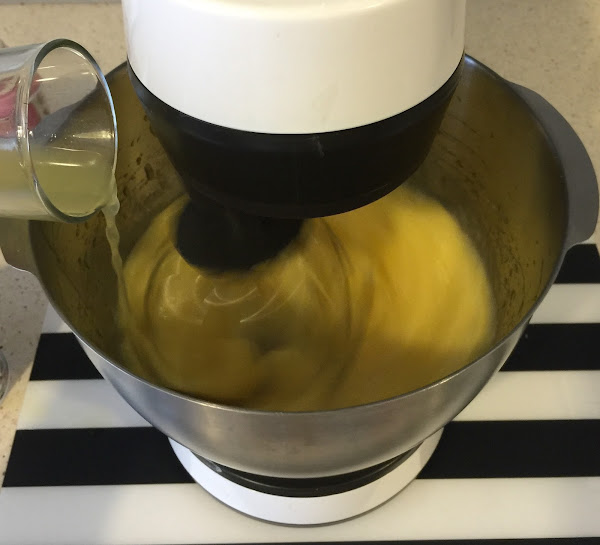 Primer paso: Batir los huevos con el azúcar hasta que esten espumosos. Una vez que duplicaron el volumen, le agregas la manteca, el jugo del limon y la ralladura. TIP: Si no queres que tenga un sabor tan fuerte, agregale solo el jugo. La ralladura cuando se calienta larga todos los aceites, y eso potencia el sabor.