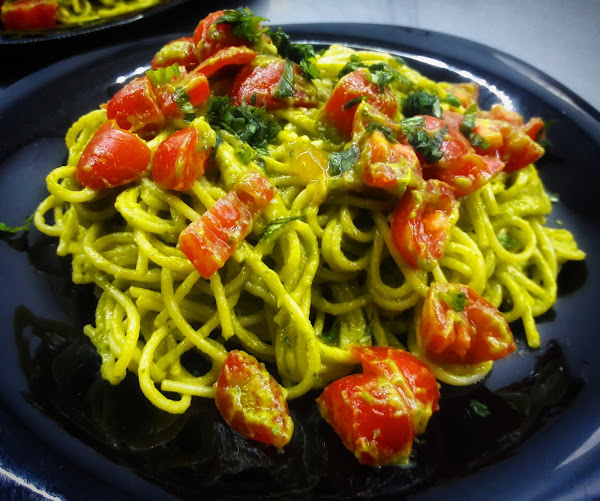 Quitar la pulpa de seis paltas, colocarla en un bol, agregar 6 gr. de gelatina en polvo sin sabor, 2 cucharadas soperas de mayonesa, 2 de crema de leche, sal, pimienta. Procesar todo y colocar esta pasta en un molde savarin. Llevar a la heladera hasta que solidifique. Desmoldar y colocar alrededor tomates cherry y huevos de codorniz partidos por la mitad. En el centro colocar camarones con jugo de limón... y unas hojitas de perejil...