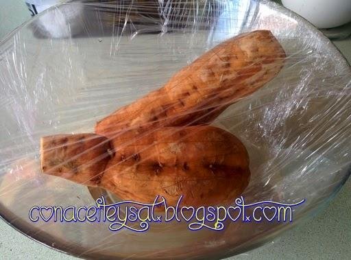 Los boniatos o Batatas se suelen comer o cocinar la mayoría de las veces al horno, pero como yo no creo que sea rentable encender un horno para cocinar dos simples boniatos, pues podemos usar las otras alternativa que tenemos ( cocer 25 minutos en agua o al microondas unos 16 minutos).