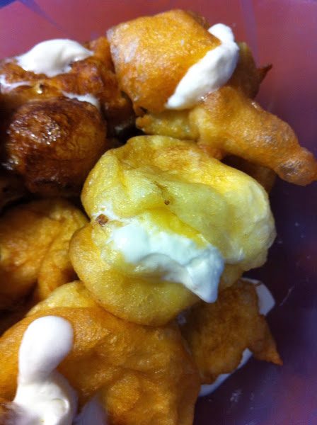 Yo los rellené con nata montado y con nocilla..... en esa tarde nos les zampamos todos jejejejeje. Para rellenarlas se les hace un corte en el medio del buñuelo y se mete lo que quieras immmmmm