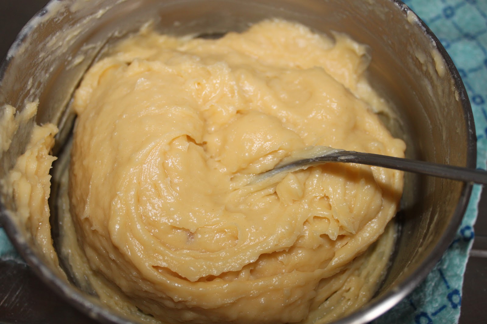 Añadimos el huevo y mezclamos hasta que esté completamente integrado en la masa. En caso de que hagamos mas cantidad y sean varios huevos, los añadiremos de uno en uno y mezclando bien, no añadiremos el siguiente hasta que el anterior no se haya integrado bien en la masa.