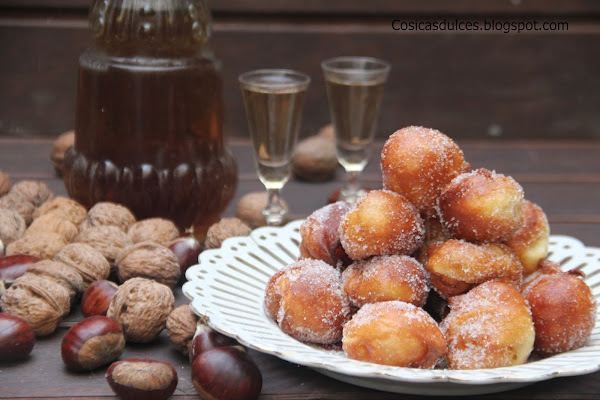 He de decir que esta receta está sacada de un libro de cocina catalana que me regalaron por mi cumpleaños, y que esta masa según se fría o se hornee, se corte por la mitad o se rellene, al resultado se le llama de manera diferente. Así que aunque inicialmente ponga que son buñuelos, en realidad son otra cosa, pero no sé cuál porque hay varios nombres. Quien lo sepa, ¡que me ilumine!
