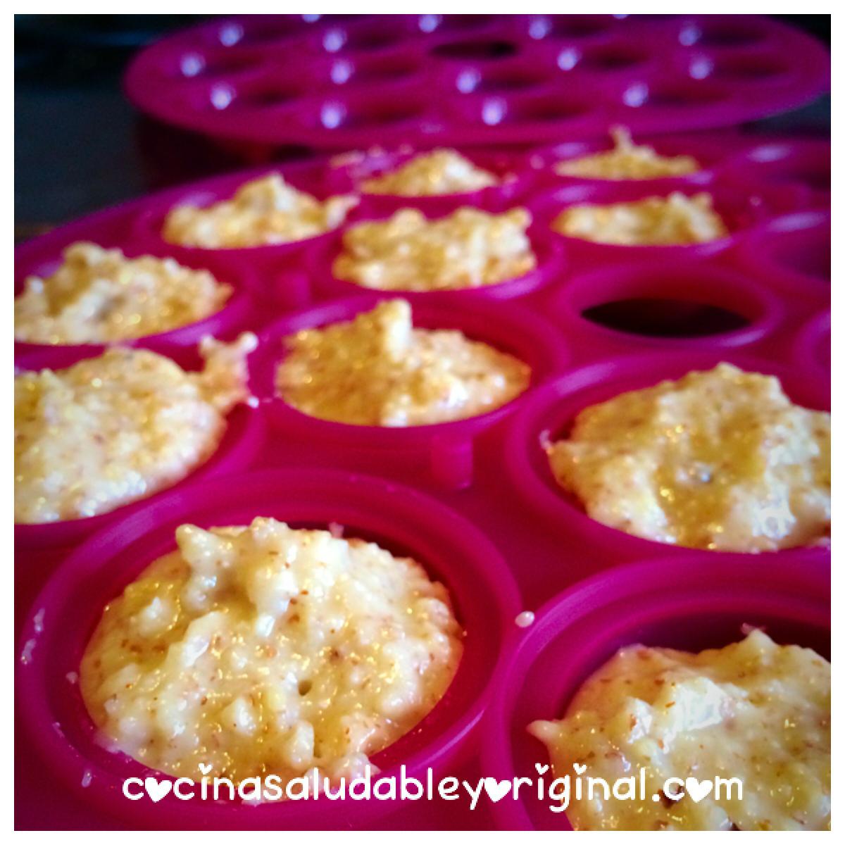 Cuando lo tengamos todo bien mezclado distribuir en el molde de silicona como vemos en la imagen.