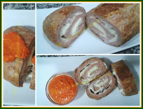 Ingredientes:400gr de carne picada de pollo/pavo2 lonchas de pechuga de pavo (fiambre)2 tranchetes de queso 3% MG1 cucharada de especias a la barbacoasal1 cucharada de semillas desésamoylino(yo las tengo mezcladas)1 huevo1 cucharada sopera depan rallado milanesaPara la salsa1 bote pequeño de pimientos del piquillo en tiras al ajillo2 cucharadas decebolla deshidratadasalpimientaun par de gotas de e ...