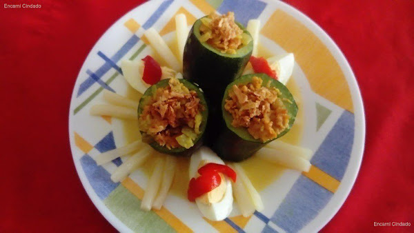 5. En una olla, poner el caldo de pollo y, cuando empiece a hervir, añadir los calabacines rellenos. Dejar hervir a fuego medio durante 10-15 minutos. Cuando queden 5 minutos, añadir los huevos duros cortados por la mitad y los espárragos escurridos.