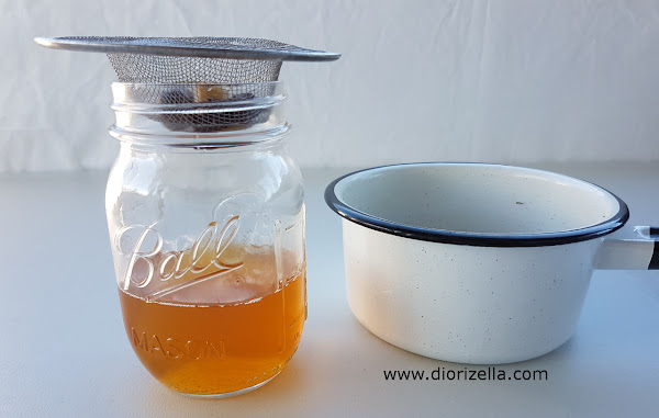 Luego que el caldo este frío, lo colamos. Si no quieres que pase ningún pedazo de especias debes usar un colador con los huecos bien pequeños o usar un filtro de café.