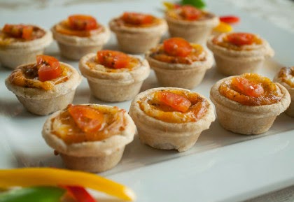 para preparar la pasta ya sea a mano con dos tenedores o en la batidora coloque la harina,azucar,sal mezcle agrege la margarina fria en trocitos mezcle a formar una borona fina,en el agua medio bata la yema agrege a la borona batir hasta unir la pasta,ya lista divida la pasta en bolitas iguales y cada bolita de pasta coloquela en moldes de quequitos pequeños o medianos y con un vasito o envase presione la bolita a que forme la canastita con todas las canastitas listas punzelas con un tenedor y llevelas al horno a 350grados f por 25min o a que dore ligeramente la pasta una vez horneadas deje enfriar mientras prepare el relleno en un tazon mezcle la salsa de tomate,queso cheddar,queso crema,oregano,pimienta y jamon coloque 2cditas de relleno en las canastitas frias y termine con 1cdita de tomate picado y un chorrito de aceite de oliva vuelva al horno las canastitas a que apenas gratine el relleno.