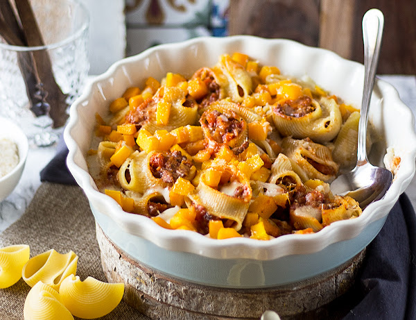 Caracolas (yo puse 4 por persona),400 gr de carne picada (en mi caso mixta vacuno/cerdo),1 cebolla,aceite/sal,bacon en lonchas,salsa de tomate,bechamel,queso rallado (he usado emmental)Así lo preparo yo: