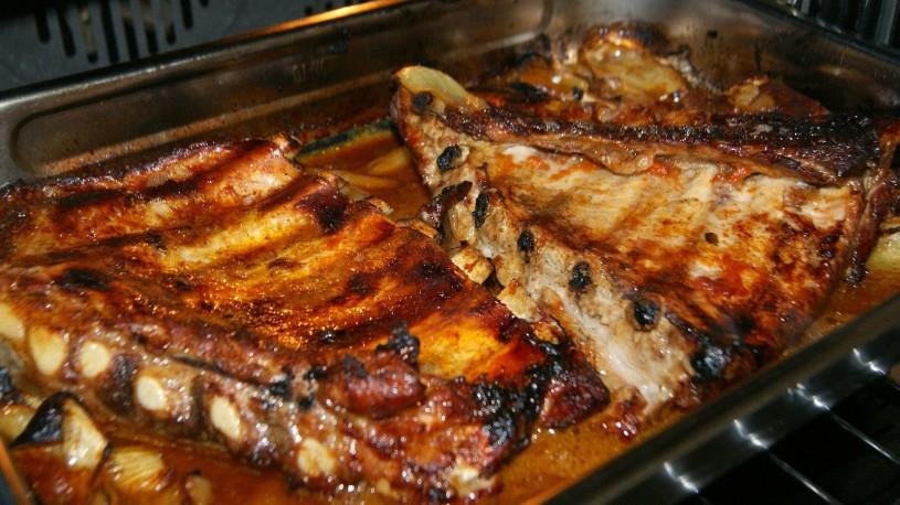 Haremos costillas al horno y acabamos por una paleta de cerdo con una salsa de ciruelas.