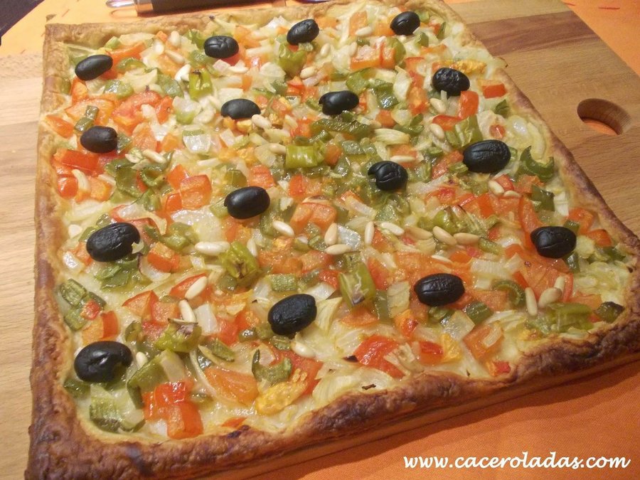 Desde blog Caceroladas, Rosa nos enseña a preparar una coca vegetal con salsa de queso, otra delicia que gracias a su base de hojaldre puedes preparar en un plis plas. Para preparar esta coca necesitaremos: cebollas, tomates, aceitunas, piñones, hojaldre, pimiento, guindillas, orégano, aceite, sal, pimienta y para la salsa de queso necesitamos quesitos, nata, queso rallado y un trozo de queso azul. La preparación de esta coca también es muy sencilla, para ello tendrás que empezar por preparar la salsa de queso en una sartén con los quesitos, el queso rallado, la nata y el queso azul, puedes ver como la prepara Rosa AQUÍ.