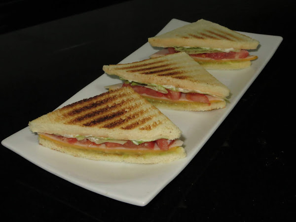 Sabéis que una de mis cadenas favoritas de comida americana es Foster´s Hollywood y hoy os traigo un sándwich que me comí el otro día muy parecida al sándwich club que estaba para chuparse los dedos.Ingredientes: - 4 rebanadas de pan de molde.- 4 lonchas de pavo ahumado.- 4 lonchas de queso cheddar.- 1 tomate.- Lechuga.- Salsa ranchera.- ...