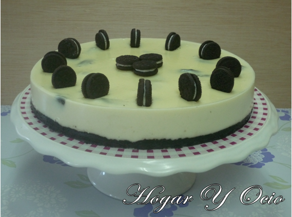 En el molde, sobre nuestra base de Oreos, vertemos la masa de cheesecake con el chocolate puro y alisamos la superficie.