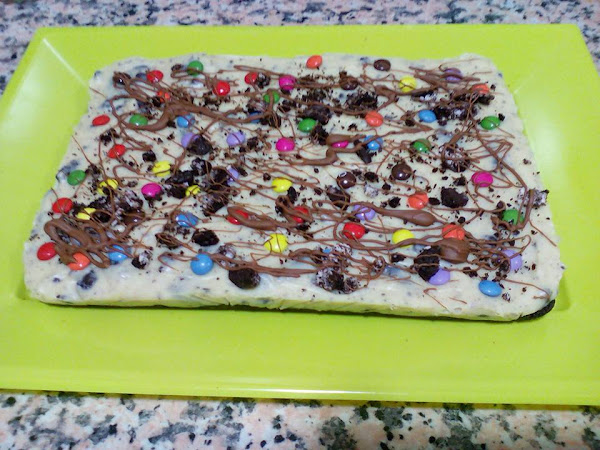 Decoramos con virutas de chocolate y, como hice yo, con un poco de migas de Oreo que reservé.