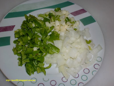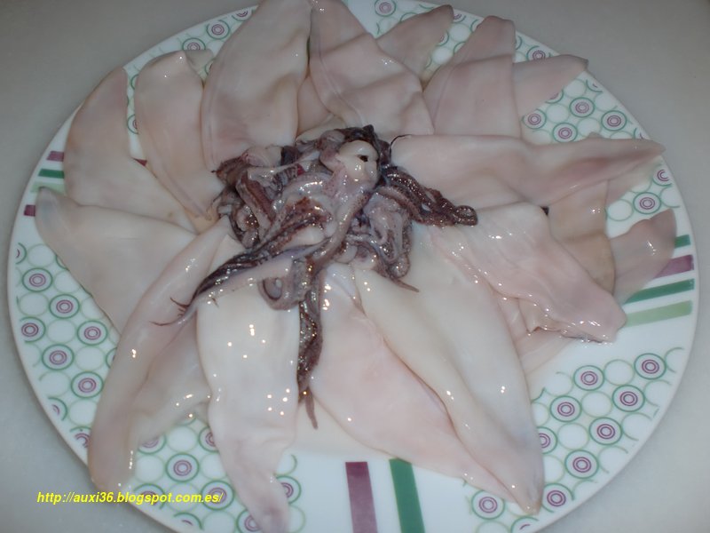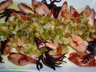 Chipirones ,pimientos verdes,ajos, cebolla aceite de oliva,perejil y sal