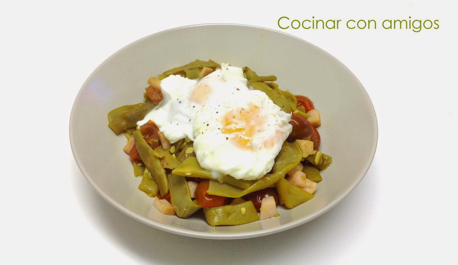 Terminamos con Cocinar con Amigos. Con unos fantásticos huevos poché sobre judías verdes. Un entrante muy completo y nutritivo.