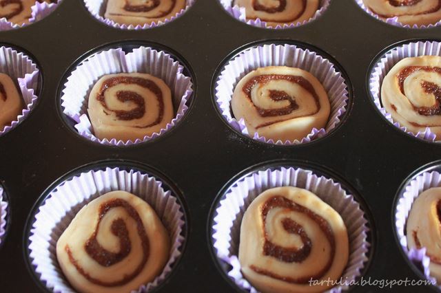 Cortamos los rollos en la dimensión que queramos, aproximadamente 24 rollos y dejamos reposar unos 30 minutos en lugar cálido.