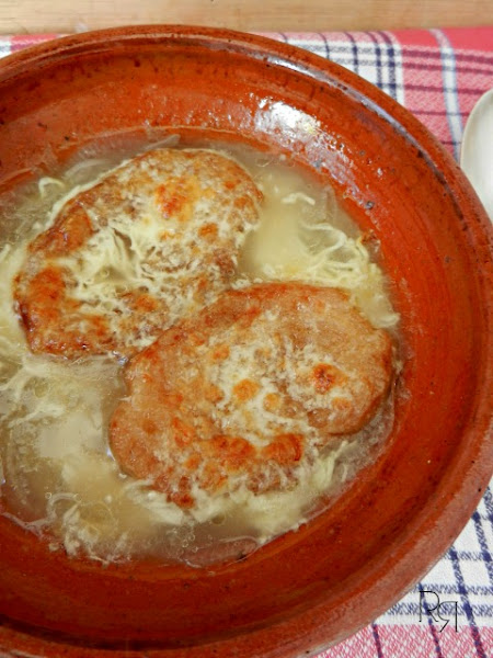 Es un clásico de la cocina francesa, muy popular en las costumbre francesas, es una receta antigua, que ganó fama en el siglo XIX, solía ser consumida por los trabajadores del mercado pero luego visitantes nocturnos en busca de algo caliente comenzaron a pedirla en las tabernas y restaurantes que rodeaban el mercado.
