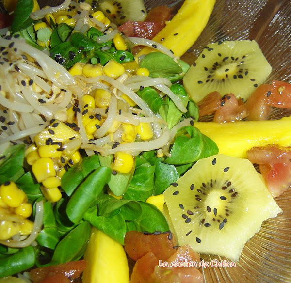 Con esta receta participo en el reto del mes de Marzo de 2016 en Color y Sabor de Temporada.Ha llegado la primavera a mi cocina y la inauguramos con una ensalada muy refrescante.El kiwi merece ocupar un lugar de honor en nuestra dieta, no solo por su sabor dulce, fresco y perfumado, sino también por los beneficios para nuestra salud. Ofrece muchas posibilidades en la cocina, ya que con esta fruta ...