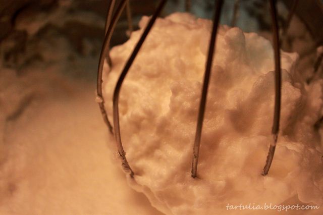 Cuando este brillante añadimos las yemas y mezclamos despacio para que se baje lo menos posible