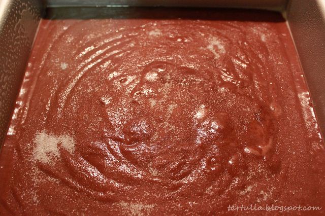 Vertemos en el molde, espolvoreamos azúcar por encima y colocamos en el horno.