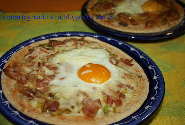 Masa de pizza cebolla frita beiconExtendemos la masa de pizza dándole forma de coca alargada y la cubrimos con la cebolla frita. Colocamos encima las tiras de beicon y lo introducimos al hormo 170-180º hasta que esté tostadita de los lados.