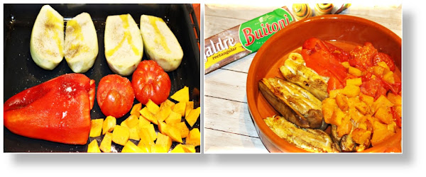 En esta ocasión, elegí calabacín, pimiento verde, tomate y calabaza. A estas alturas y todavía no había probado la calabaza asada... ¡Qué rica queda! Me encantó.