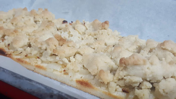 Las pones encima de la masa y metes todo al horno, previamente calentado a unos 150º. Cuando veas que está doradito lo sacas.