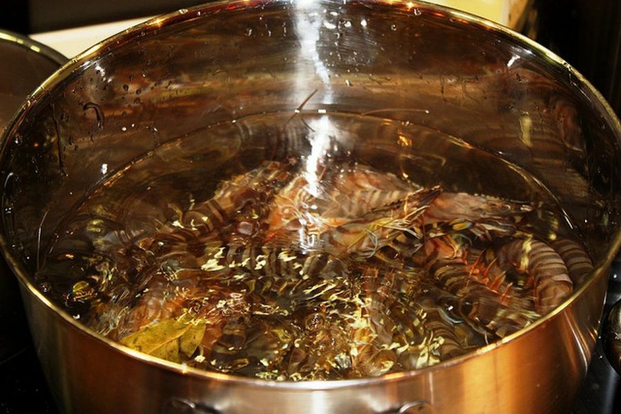 Los mariscos muertos se introducirán cuando esté el agua hirviendo y se comenzará a contar el tiempo de cocción desde el momento en que empiece a hervir de nuevo.