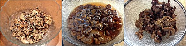Utilicé setas secas y las hidraté en agua antes de cocinarlas. Las escurrí y reservé.
