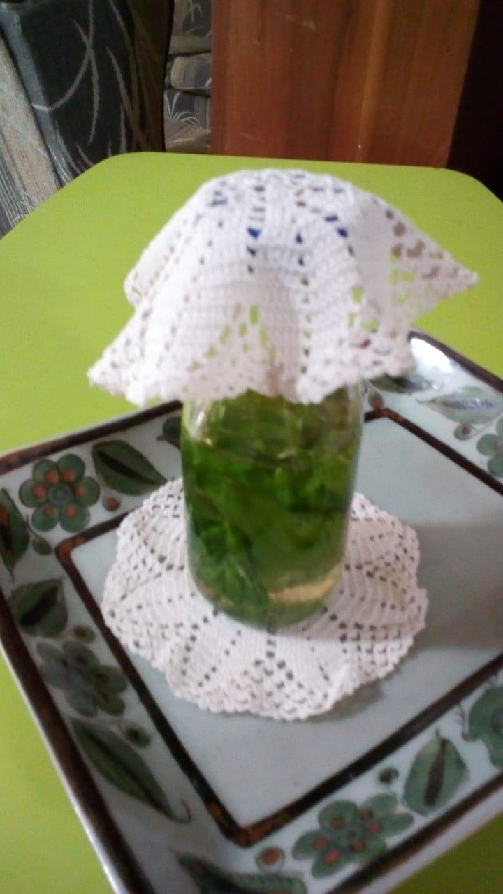 Se colocan en un tarro o frasco de vidrio muy limpio las hojas de albahaca y se les pone un poco de sal en polvo en cada capa. Al terminar de colocar todas las hojas dentro del tarro, se llena éste con aceite de oliva extra virgen para que la conservación y el resultado que se obtenga sea exquisito y de la mejor calidad.