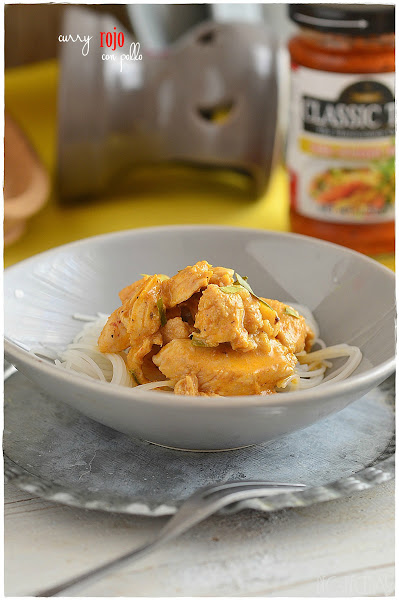 2. Incorporamos la pasta de curry, para ayudar a que se separe bien le ponemos un chorrito de leche de coco.