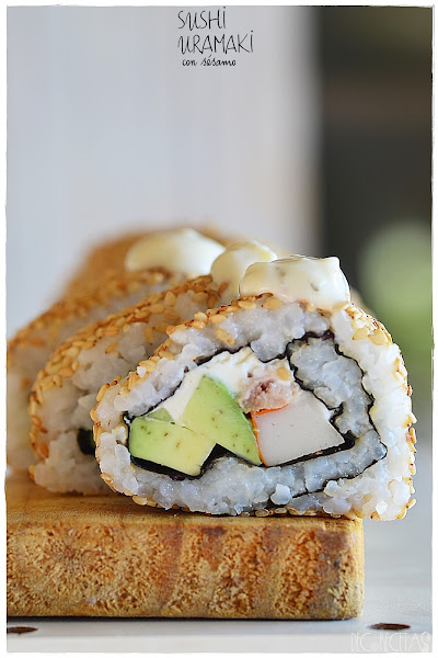 El sushi uramaki no es más que un California roll, es una manera de comer sushi donde el alga queda por dentro y por fuera queda el arrozNo son los primeros que realizó en casa como podéis ver aquí, pero estos además están rebozados en sésamo qué es lo que los caracterizaAunque yo no soy muy amante del pepino, confieso que comiendo lo con Susi me agrada el frescor que aportaPara realizar estos ura ...