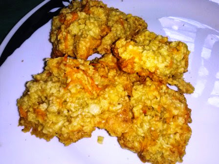 2 tazas de copos de avena, 1 taza de aceite ( yo usé aceite de girasol y de oliva virgen extra, mitad y mitad) 6 zanahorias ralladas, 1 cucharadita de canela molida, 1 cucharadita de jengibre, nuez moscada, 2 puñados de pasas, 6 cucharadas de miel, 2 cucharaditas de azúcar vainillada