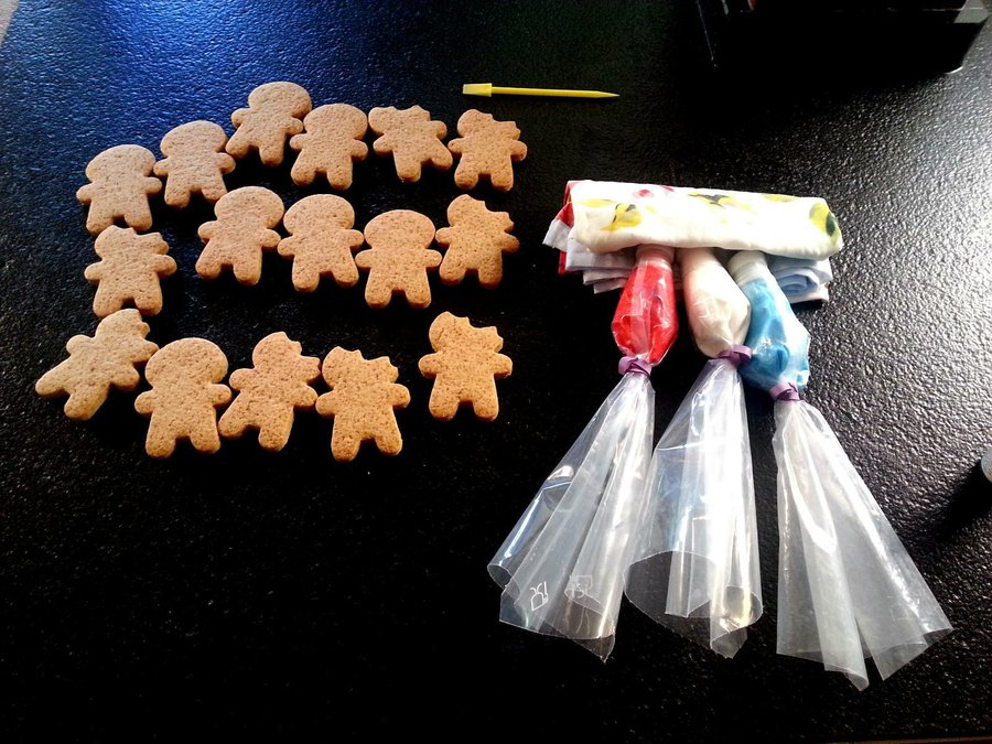 No nos olvidamos de lo importante: preparar la masa de las galletas. Vas a necesitar para ello 500 gr de harina, ½ cucharadita de bicarbonato, una pizca de sal, 1 cucharadita de canela molida, 2 cucharaditas de jengibre, ¼ de cucharadita de clavos molidos, 225 gr de mantequilla a temperatura ambiente, 150 gr de azúcar moreno y 2 huevos. Como en el caso de la glasa, con un robot amasador te resultará más sencillo trabajar la masa. Y no te olvides del cortapastas con las forma característica del muñeco.